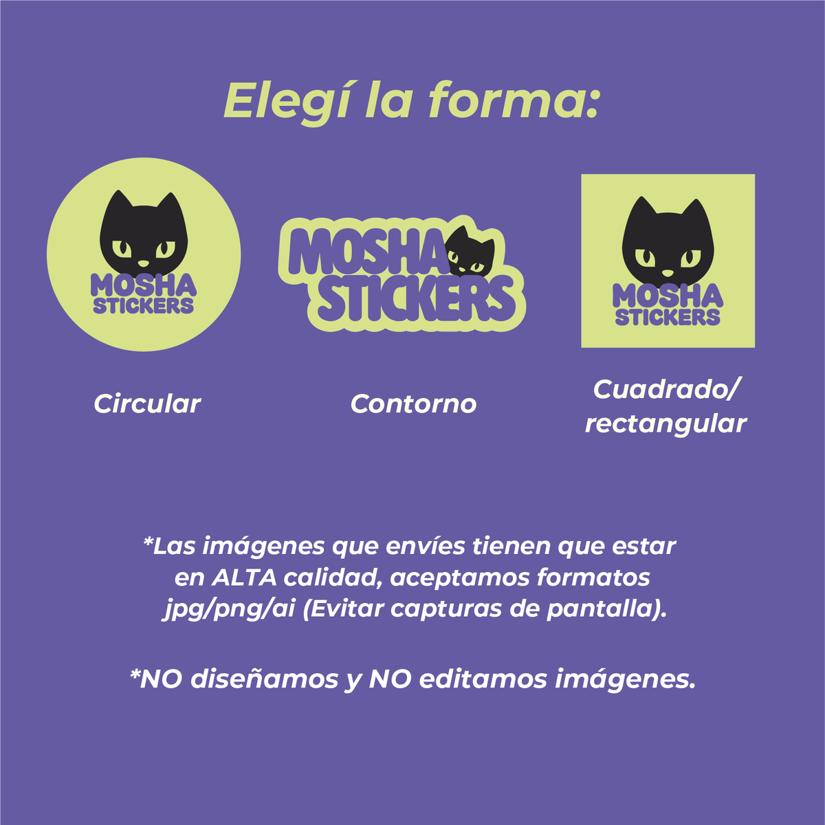 Cuando nos envies las imágenes al mail, te vamos a enviar una muestra de cómo quedarian los stickers, una vez que tengamos el ok, se envian los stickers a producción. A partir de ahi, la elaboración es de 15 días hábiles aprox.
